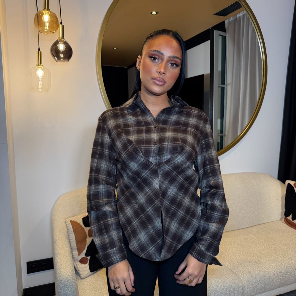 Chemise ceintré à carreaux, peut-être porté décolté ou totalement attaché