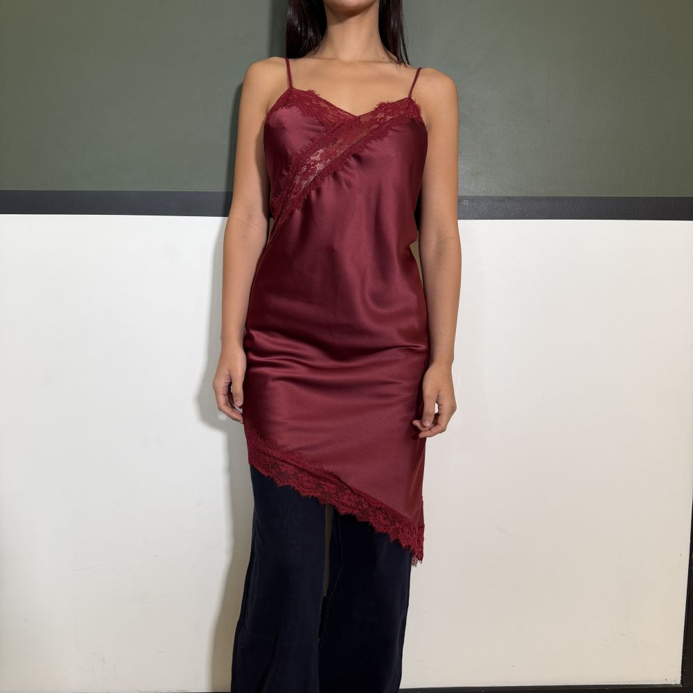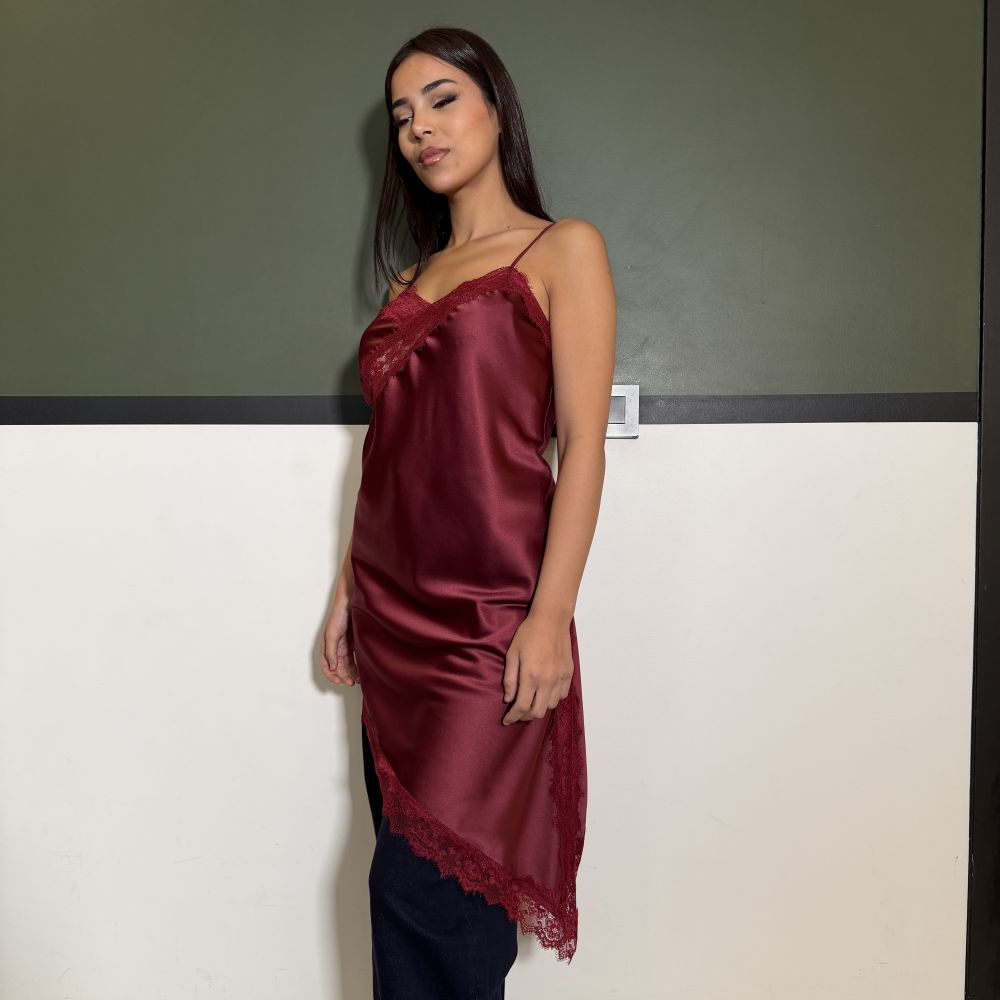 Top à dentelle bordeaux asymétrique bretelles fines